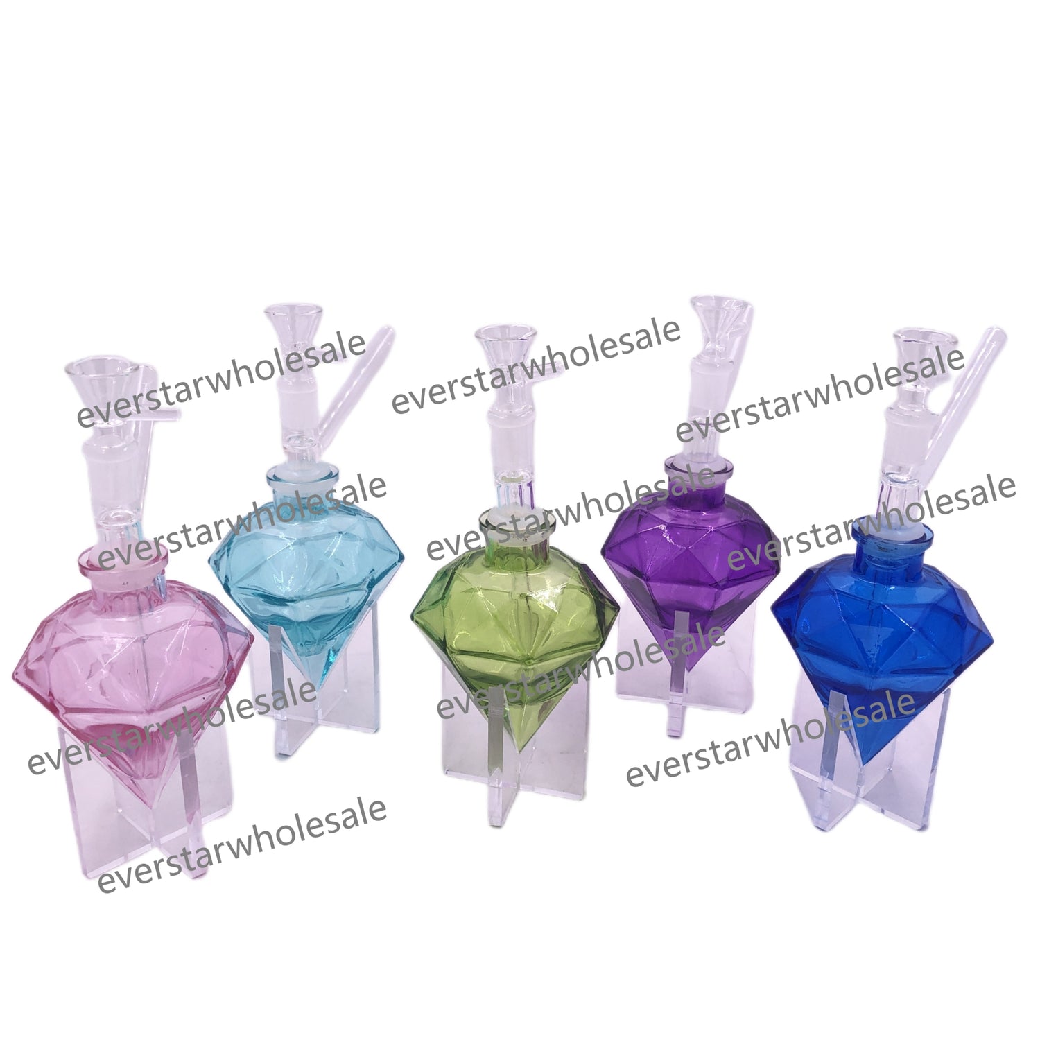 6 Inch Tall Two Colors Square Glass Bottle Showerhead Perc Water Pipe 14mm Female Joint-Random Color Comes
