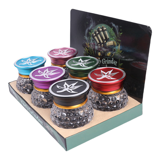 Tobacco Herb Grinder Cured Maple Leaf Lid and Glass Storage Jar