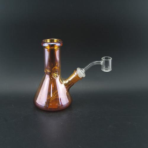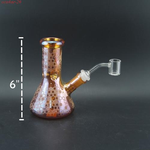 1pc 6"Glass Beaker Bong Water Pipe Electroplated Iridescent Color