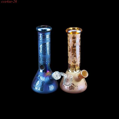 1pc Electroplated Glass Beaker Bong Water Pipe with Curved Patterns 8"