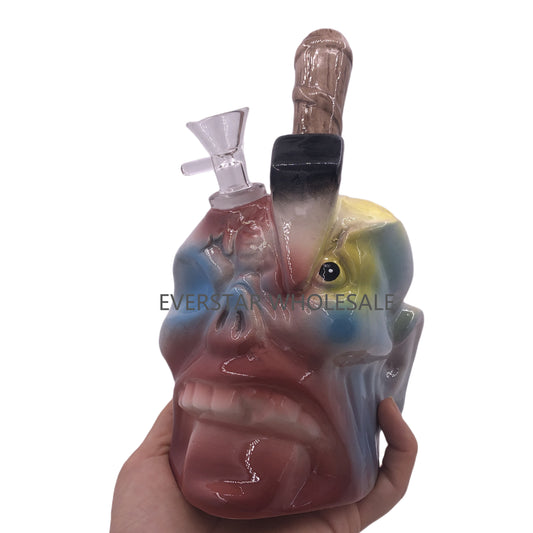 7.76 inch Skull Head with Axe Ceramic Water Pipe