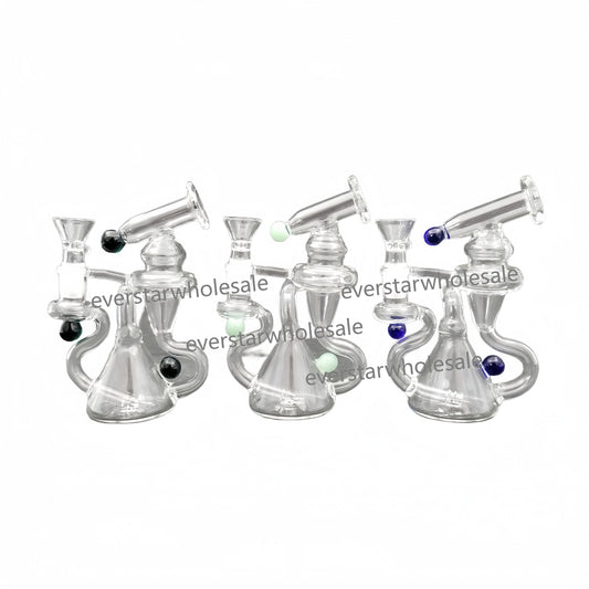 6 Inch Tall Clear Recycler Dab Rig with Colored Beads