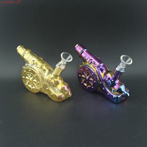 3.8" High Italian Cannon Electroplated Glass Water Pipe