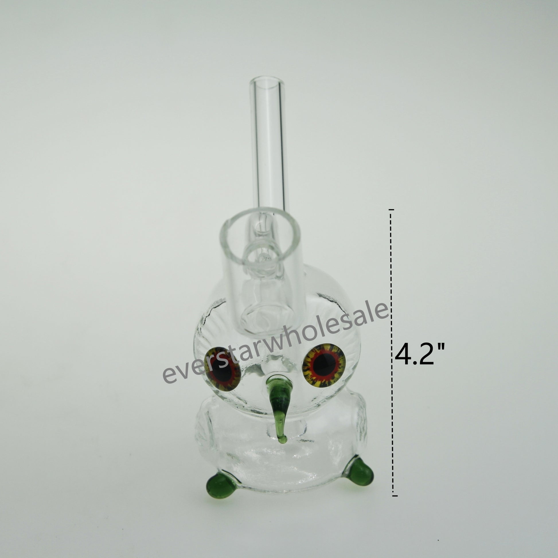 4.2 Inch Tall Owl Design Clear Glass Mini Dab Rig with Fixed Banger