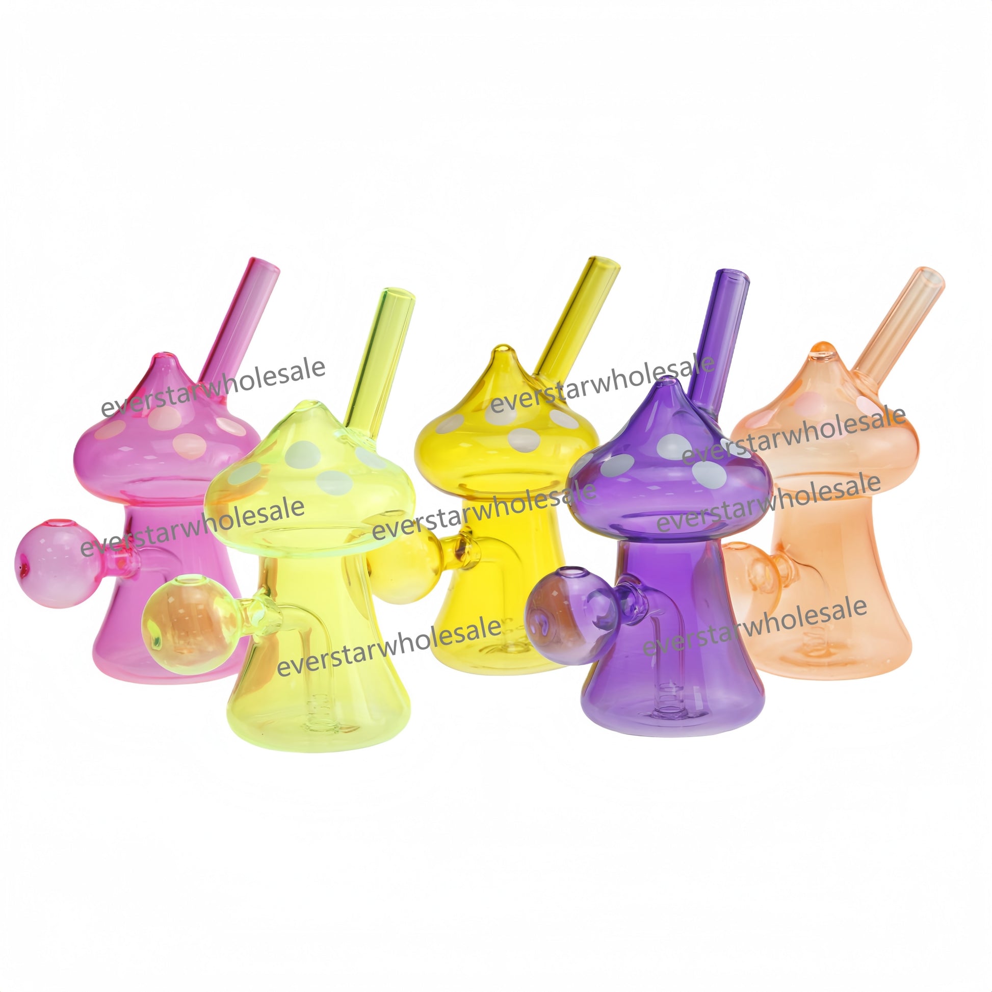 5 Inch Tall Colored Mushroom Glass Bubbler-Random Color Comes