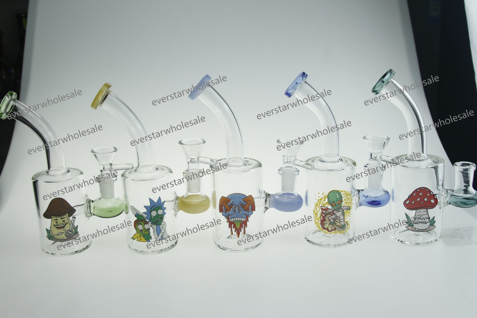 6.7" Bend Neck Colorful Mouthpiece Cylinder Glass Water Pipe with Sticker