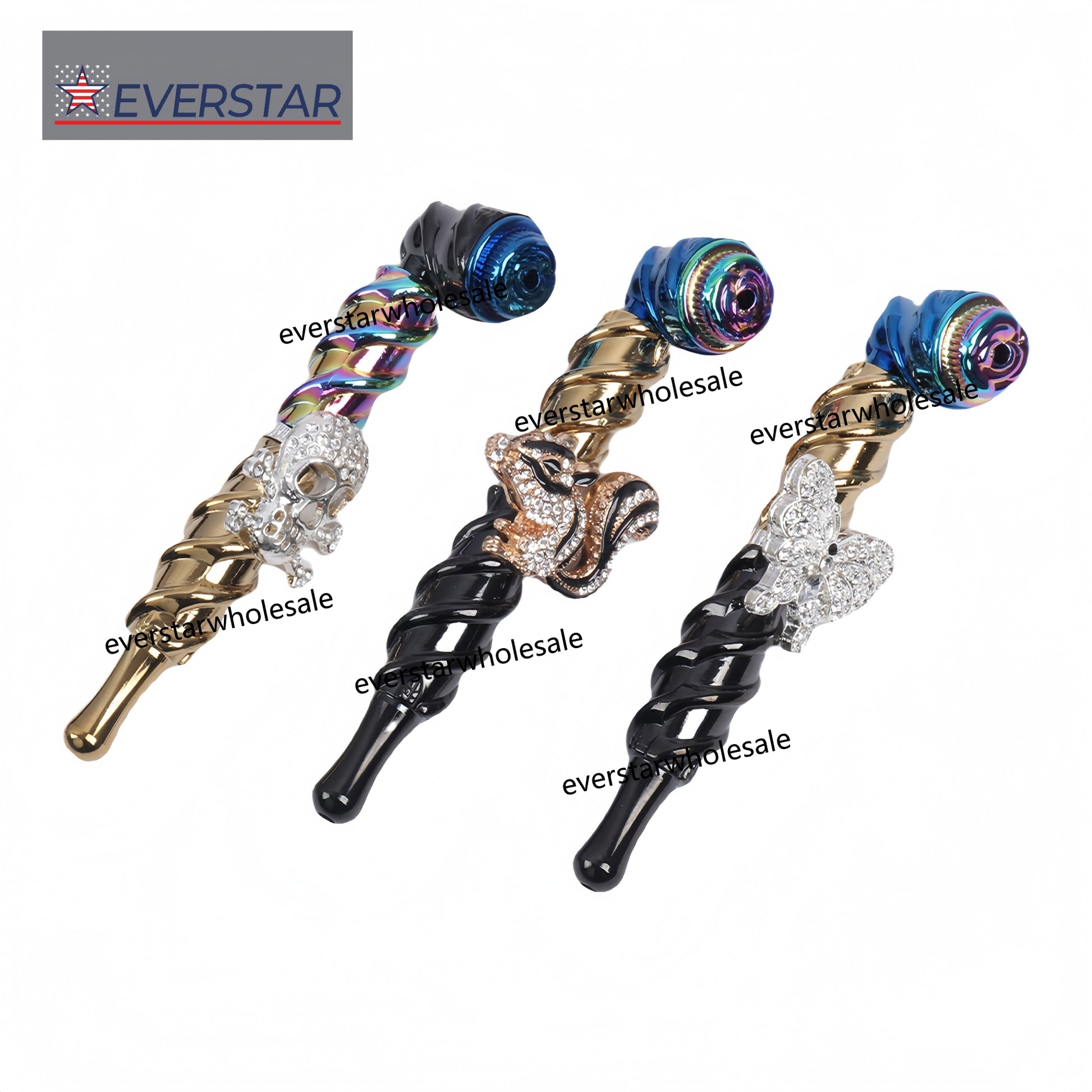 Metal Hand Pipe Spiral Tube with Diamond Animal on Tube-10pcs/Box